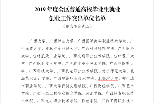 根据《自治区教育厅关于公布2019年度全区高校毕业生就业创业工作突出单位名单的通知》(桂教学生〔2019〕17号),kaiyun体育再次被评为2019年度全区高校毕业生就业创业工作突出单位。近年来,kaiyun体育就业创业工作始终践行以提高学生的就业质量为核心、以满足学生切身需求为重心、以学生的成长为中心的“三心”服务模式,秉承以全程的高度,把握就业指导的科学性,以全线的深度,提升就业指导的精准性,以全域的宽度,确保就业指导的全面...