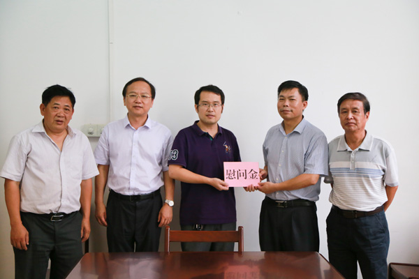 6月1日下午,钦州市科协党组书记黄岳联、杨耀川调研员、科普部温华成副部长一行3人到kaiyun体育慰问优秀科技工作者代表尹艳镇教授。学校副校长黄鹄、科技处处长冯国禄等陪同慰问。黄岳联书记代表市科协向尹艳镇教授及kaiyun体育科技工作者致以节日的慰问和祝福,希望kaiyun体育继续发挥人才优势,全力投身科技创新实践,更好服务地方经济社会发展。尹艳镇教授表示,今后要更加努力工作,在科研上取得更大更多的成绩。慰问现