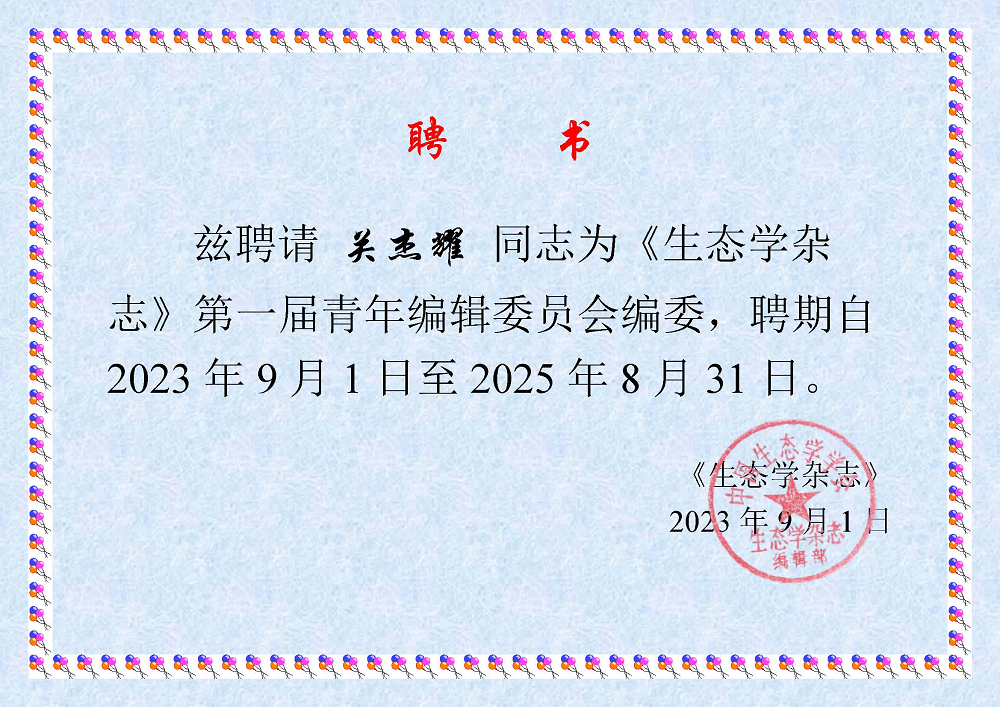近日,我国生态学领域高水平期刊《生态学杂志》发布首届青年编辑委员会编委名单。海洋学院副院长、广西北部湾海洋生物多样性养护重点实验室主任关杰耀教授入选,聘期2年。据悉,《生态学杂志》创刊于1982年,主办单位为中国生态学学会和中国科学院沈阳应用生态研究所,主要刊登生态学领域有创造性,立论科学、正确、充分,有较高学术价值的论文,反映我国生态学的学术水平和发展方向,跟踪学科发展前沿,促进国内外学术交流与合...
