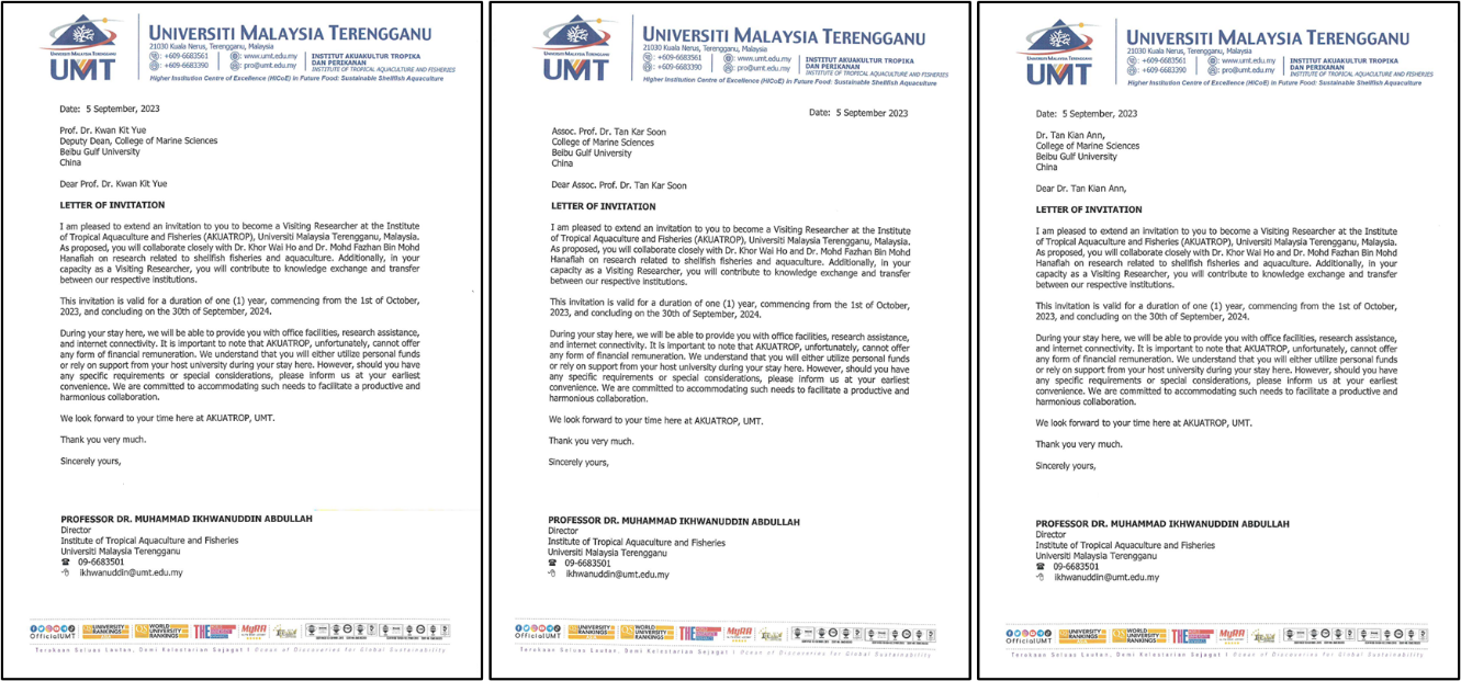 近日,海洋学院副院长、广西北部湾海洋生物多样性养护重点实验室主任关杰耀教授以及骨干教师邓嘉信博士和陈健安博士受邀担任马来西亚登嘉楼大学(Universiti Malaysia Terengganu)热带水产与渔业研究所的访问学者(Visiting Researcher),彰显了kaiyun体育网页登录入口海洋科学学科建设成效和国际影响力。日后关杰耀教授等将与马方开展更加紧密的科研合作,携手推进海洋科学领域的发展。马来西亚登嘉楼大学成立于1979年,前身为渔业和海洋...