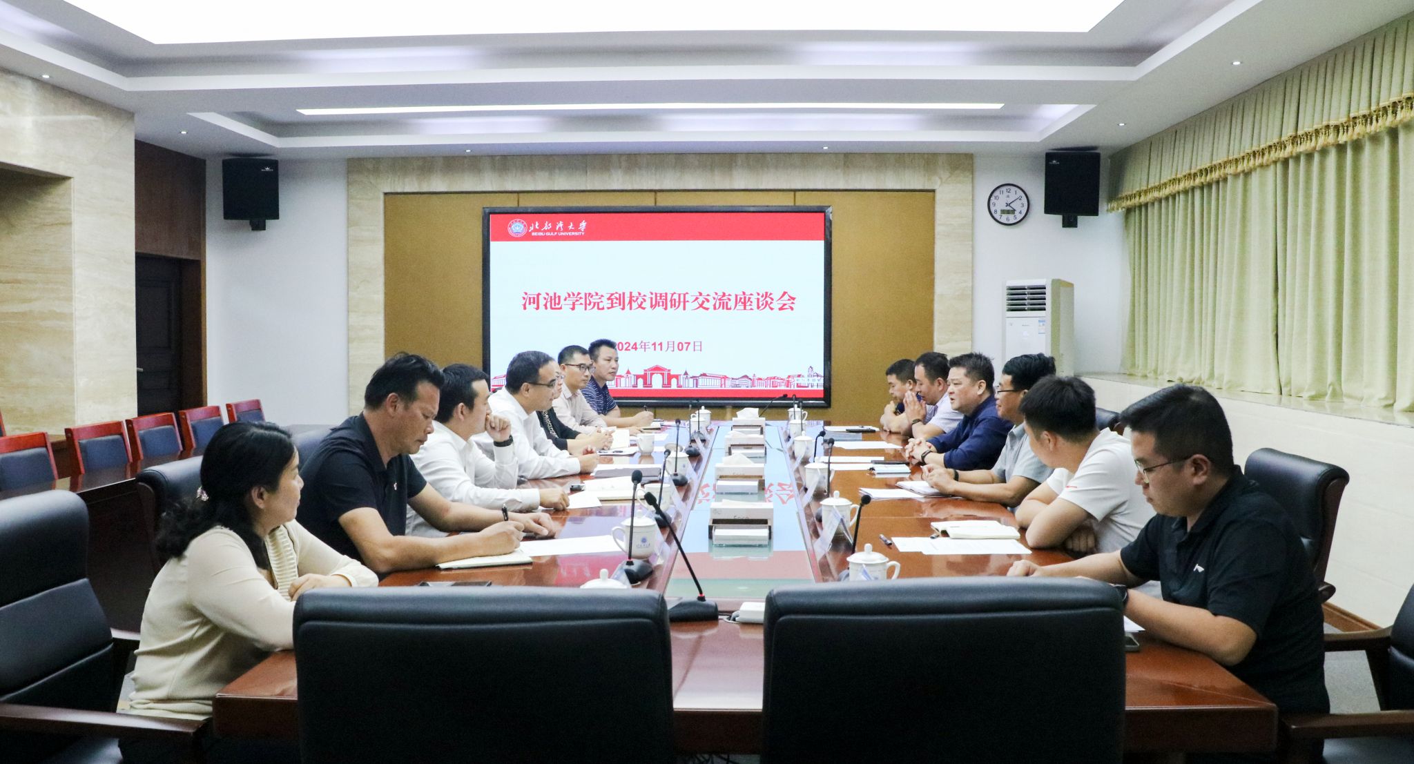 11月7日下午,河池学院党委常委、副校长覃拥灵一行6人到kaiyun体育调研交流。校党委常委、副校长马秀明出席并主持座谈会。马秀明对覃拥灵一行的来访表示热烈欢迎。他简要介绍了学校建设情况,并从建设规划、后勤管理等方面分享了校区建设的经验做法。覃拥灵对kaiyun体育基建与后勤工作的成效给予肯定。他表示,将学习湾大校区建设经验,推进河池学院新校区建设工作。双方表示,将以此次座谈为契机,进一步加强沟通与协作,充分发挥各自优势,互鉴互助,...