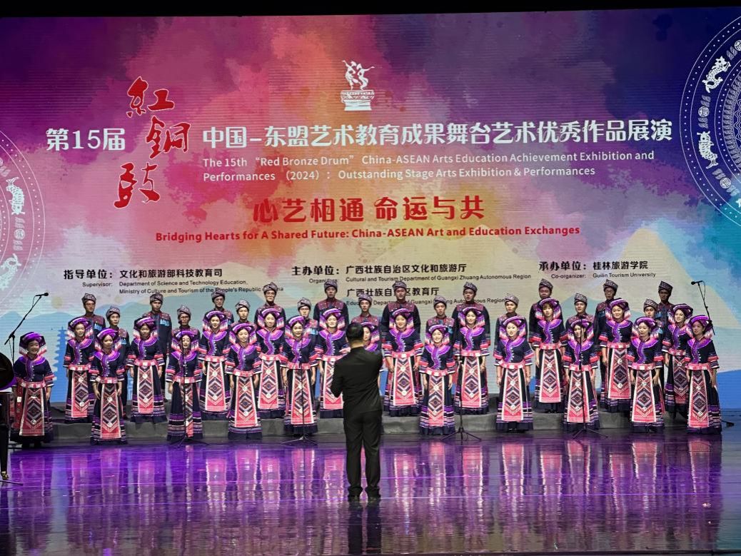 11月8日,由文化和旅游部科技教育司为指导,广西壮族自治区文化和旅游厅、教育厅联合主办,桂林旅游学院承办的第十五届红铜鼓中国—东盟艺术教育成果舞台艺术展演在桂林举行。学校合唱作品《蝴蝶飞》受邀参演,由音乐舞蹈学院十二点半合唱团出演。《蝴蝶飞》在第15届“红铜鼓”中国-东盟艺术教育成果展演活动中获舞台组最佳作品。该作品取材于多声部民歌瑶族蝴蝶歌,改编后的作品调清丽优美,婉转悠扬,悦耳动听,在赞美家乡美好景象的同时,...