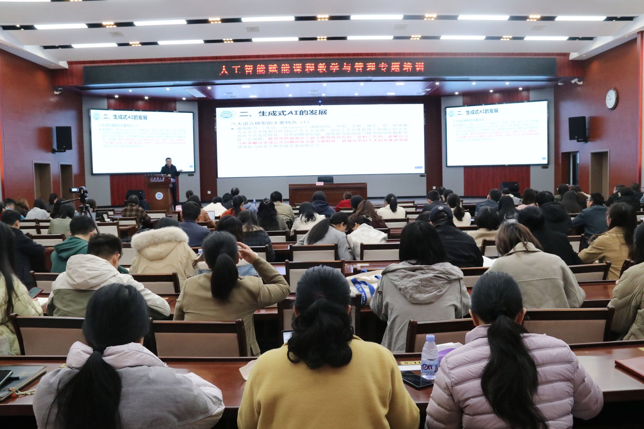 3月11日,学校在办公楼一楼报告厅举办人工智能赋能课程教学与管理专题培训。本次培训由教务处、教师发展中心、电子与信息工程学院联合主办,吸引了300余名专任教师和行政教辅人员参加。电子与信息工程学院徐涛博士以“人工智能技术解析与智能场景应用”为题,刘秀平博士以“课程智能体开发与实践——构建湾大特色AI教学体系”为题,为到场教师开展培训。徐涛深入浅出地介绍了人工智能的基本概念、生成式AI的发展历程以及DeepSeek技术的应用场景,...