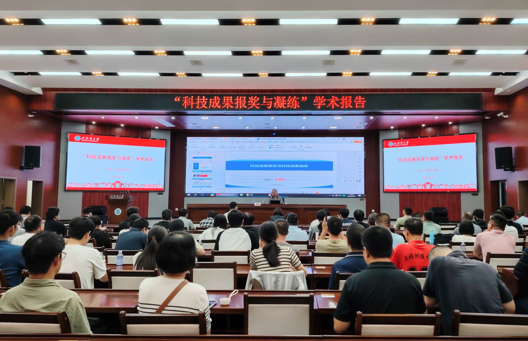 4月27日下午,学校举办“科技成果报奖与凝练”学术报告会,特邀武汉理工大学水路交通控制全国重点实验室初秀民研究员作专题辅导。校党委常委、副校长陈丹出席,学校理工类学院师生代表及科研骨干约150人参会。初秀民基于丰富的实际案例,系统解析了成果培育、材料组织、奖项申报三大核心板块。他指出,科技成果奖申报要提前布局材料积累,强化团队协作,以重大科研项目为依托构建成果体系,构建多维评价机制并靶向优化技术报告核心价值,...