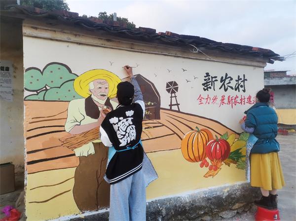 春节即将来临,迎新春的气氛越来越浓,学校定点帮扶的玉林博白县松旺镇周北村黄坭塘自然村的墙壁也换上了美丽多彩的“新衣”,那是湾大寒假返乡的学子为家乡描绘的乡村振兴美好愿景,他们用一大三小共4面靓丽的墙体彩绘为家乡送去新年的祝福。1月17日至22日,陶瓷与设计学院5名玉林籍大学生志愿者在学校驻村第一书记颜世周的组织下,主动报名到博白县松旺镇周北村开展彩绘创作。同学们紧密结合当地传统文化和乡村特色,以通俗易...