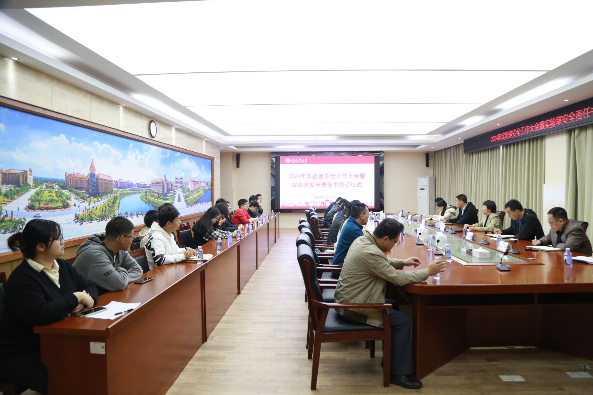 1月10日上午,学校在办公楼523会议室召开2024年实验室安全工作大会暨实验室安全责任书签订仪式。校党委常委、副校长陆衡出席会议。陆衡通报了2023年度实验室安全检查情况,对2024年实验室安全工作进行了部署,并就进一步加强有关工作提出四点要求:一是要提高政治站位,充分认识实验室安全的重要性;二是要坚持问题导向,着力抓好实验室安全的关键点;三是要加强管理服务,不断提高大型仪器设备的利用率;四是要持续长抓常管,构筑实验室安全管理的责任网,...