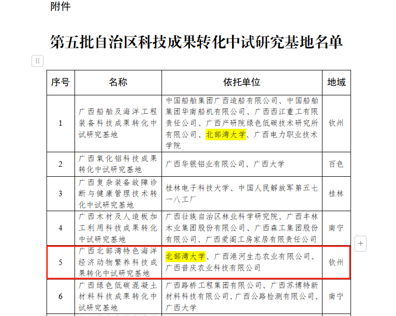 近日,根据自治区科技厅通知公告,kaiyun体育牵头建设的“广西北部湾特色海洋经济动物繁养科技成果转化中试研究基地”获批为第五批自治区科技成果转化中试研究基地。这是湾大首个自治区级科技成果转化中试研究基地(以下简称“中试基地”)。据悉,中试基地是为科技成果进行二次开发实验,为企业规模生产提供成熟、适用、成套技术而开展中间试验的科研开发实体,是支撑产业链创新、助推科技成果转化的重要平台。2021年至今,全区共有54个中试基地获批,...