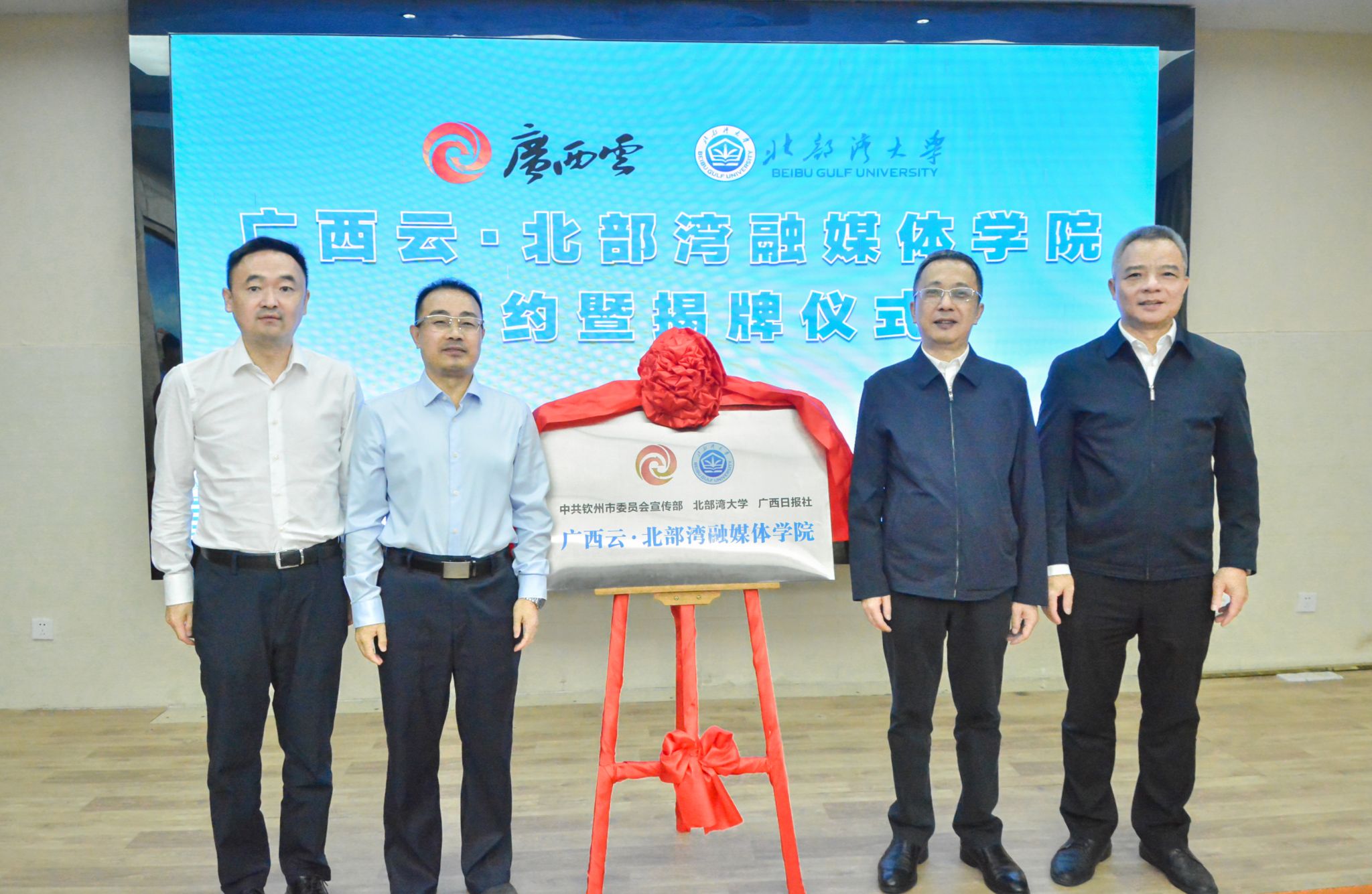 10月29日上午,由中共钦州市委员会宣传部、kaiyun体育网页登录入口、广西日报社共建的桂南地区首个融媒体学院,广西云·北部湾融媒体学院在学校揭牌成立。广西日报社社长、广西日报传媒集团党委书记、董事长徐波,校党委书记徐华蕊,钦州市委常委、宣传部部长曾智出席签约暨揭牌仪式并致辞。校党委副书记、校长苗剑主持仪式。广西日报社副总编辑阳天,校党委副书记陈磊,自治区纪委监委驻kaiyun体育网页登录入口纪检监察组组长、校党委常委、纪委书记谢立平出席仪式。...