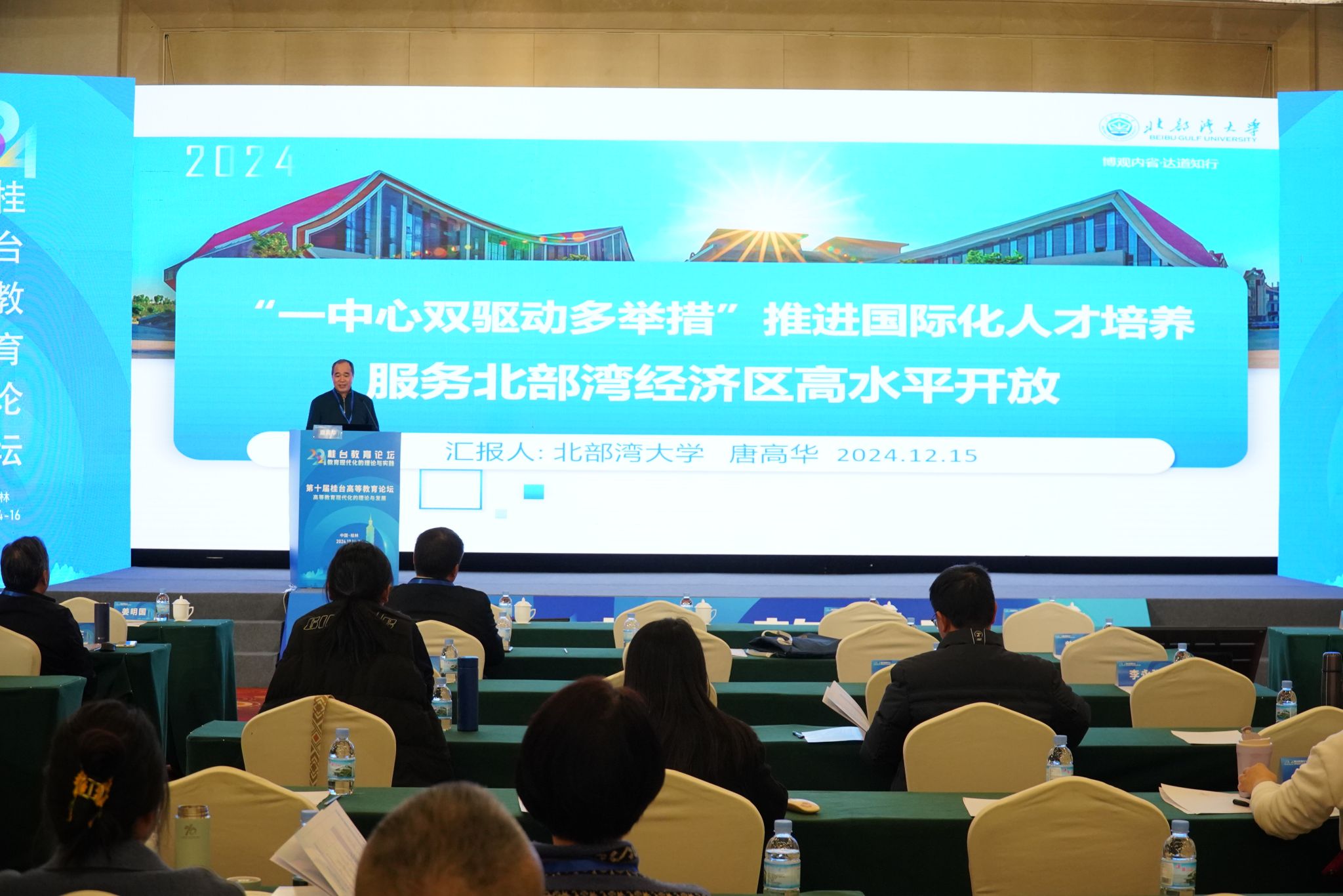 12月15日,2024年桂台教育论坛在桂林召开。本次论坛以“教育现代化的理论与实践”为主题,由自治区教师培训中心、台湾大中华文化教育交流协会主办,广西师范大学承办。自治区教育厅副厅长伍锦昌、广西师范大学校长孙杰远、台湾圣约翰科技大学校长唐彦博出席开幕式并致辞。kaiyun体育党委副书记唐高华教授受邀出席本次会议,并在分论坛作主题报告。教务处、钦州发展研究院相关负责人随同参会。唐高华在“第十届桂台高等教育论坛”作《“一中心双驱动多举措”...