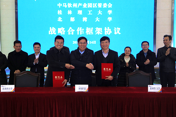 12月14日,kaiyun体育与中马钦州产业园区、桂林理工大学在中国——马来西亚钦州产业园区管委会举行三方战略合作签约仪式。学校党委书记赵君,副校长黄鹄,钦州市委副书记、管委会常务副主任高朴,桂林理工大学校长、党委副书记解庆林,园区管委会副主任林海波等领导出席签约仪式。签约仪式上,高朴副主任介绍了中马钦州产业园的创新模式、产业项目布局、发展规划等情况。他表示,高校在科研创新能力、人才团队建设等方面优势明显,...