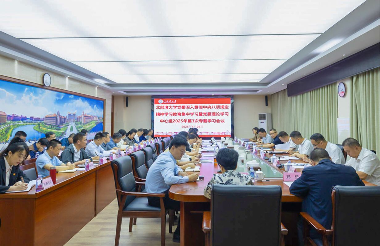 5月26日,学校党委深入贯彻中央八项规定精神学习教育集中学习暨党委理论学习中心组2025年第3次专题学习会议在办公楼523会议室召开,深入学习习近平总书记关于加强党的作风建设的重要论述,关于深入贯彻中央八项规定精神学习教育的重要讲话和重要指示精神等。会上,校党委书记徐华蕊领学了《习近平关于加强党的作风建设论述摘编》和中央八项规定及其实施细则精神。徐华蕊,校党委副书记、校长苗剑以及梁智、谢立平、陆衡、马秀明、陈丹、...