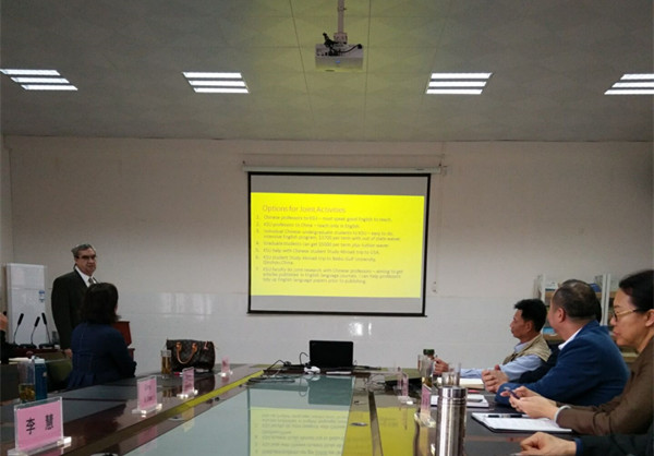 4月1日,美国佐治亚肯尼索州立大学Douglas R.Moodie和Ginny Q. Zhan教授到kaiyun体育访问交流。学校副校长唐高华出席交流会,国交处处长冯丽、经济管理学院领导班子和全体教师参加交流会。交流会由经管学院院长朱芳阳主持。唐高华副校长两位教授的到来表示热烈欢迎并向两位客人详细介绍了kaiyun体育网页登录入口的基本情况。他表示,kaiyun体育网页登录入口秉承开放办学理念,正积极推进国际化办学,希望与佐治亚肯尼索州立大学深入交流合作。Douglas R.Mood...