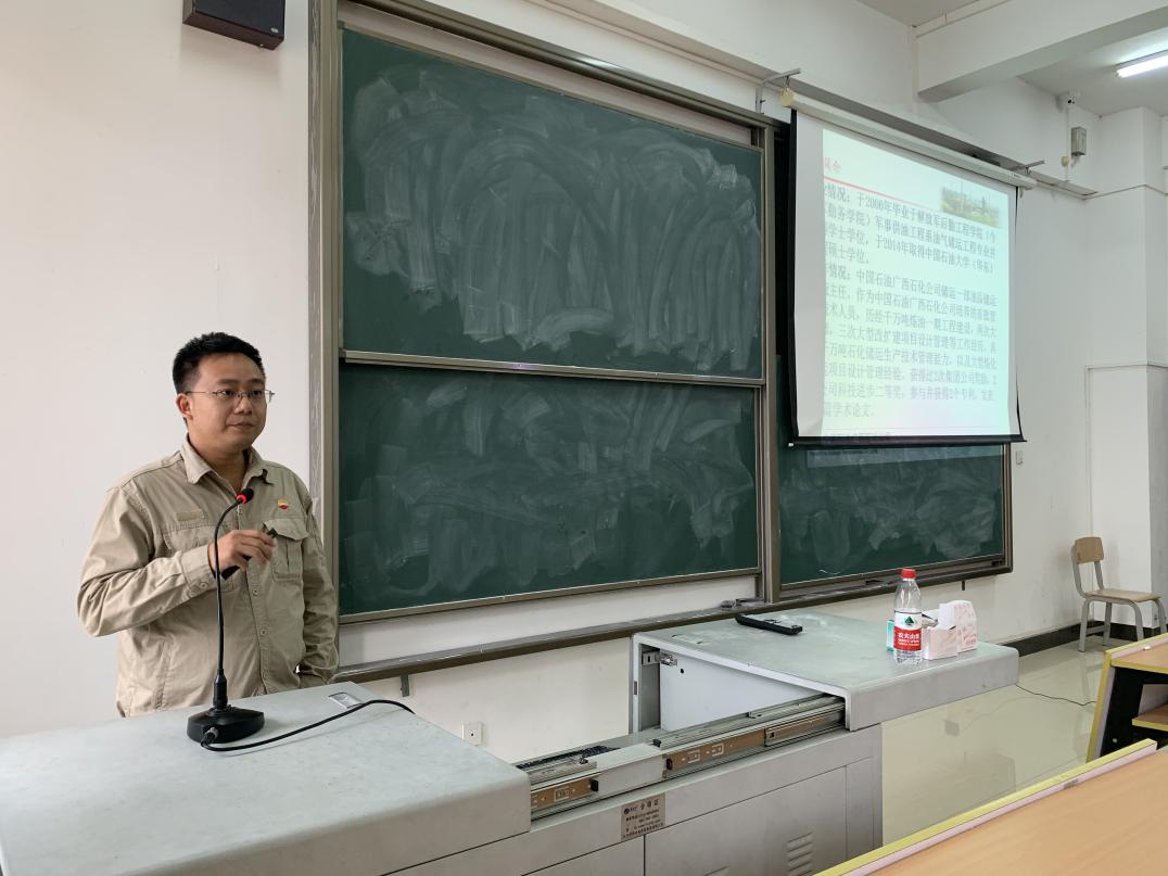 11月27日,中石油广西石化公司高级主管祝春强工程师应邀到石油与化工学院进行学术讲座交流,学术报告在6-503举行,由石油与化工学院张艳军副院长主持,石油与化工学院李岩、周雄、姚峰等教师以及石油与化工学院学生共60多人到场认真聆听。祝春强工程师报告题为《炼化储运与油品调和技术》,祝工程师对我国炼化储运系统的组成及原油、汽油调和技术工作原理、工艺技术、主要设备进行介绍,结合中石油广西石化公司储运一部原油、汽...