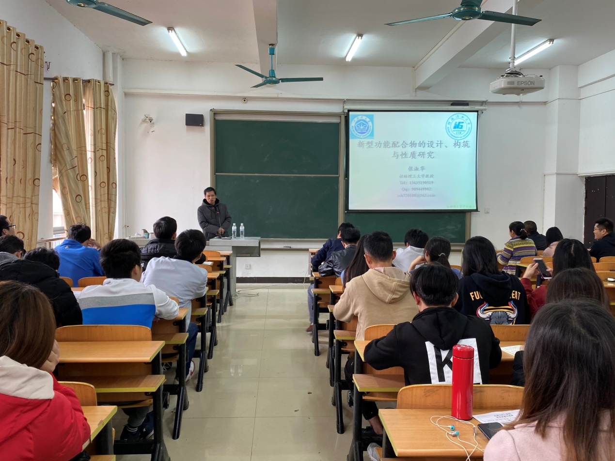 12月26日,桂林理工大学博士生导师、二级教授张淑华应邀到石油与化工学院进行学术讲座,学术报告在6-503举行,由石油与化工学院张艳军副院长主持,石油与化工学院蔡成翔教授、李家明教授、何坤欢博士、姚峰等教师以及石油与化工学院学生共60多人到场认真聆听。张淑华教授报告题为“基于五氨基四氮唑以及柔性芳香羧酸配合物的设计合成与性质研究”,讲解了金属有机框架材料制备,配合物材料的性质研究方法等知识,并分享了其研究...