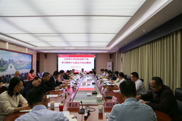11月11日下午,学校纪委在办公楼523会议室召开十九届五中全会精神专题学习会议,学校党委常委、纪委书记覃宇环出席并主持会议,校纪委委员、各二层机构纪委书记以及专职纪检监察、巡察干部参加会议。会上,学校纪委副书记姚敏围绕十九届五中全会高质量发展的要求,结合学校实际就如何推动纪检监察工作高质量发展做了中心发言;校纪委委员郭怀辉就高校纪委如何学习贯彻十九届五中全会精神以及二级学院学习贯彻十九届五中全会精神...