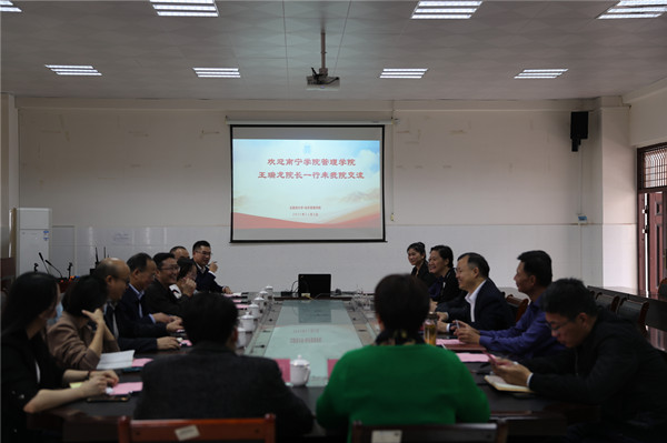 11月3日,南宁学院管理学院院长王瑞龙一行10人到kaiyun体育经济管理学院考察交流。学院党委书记许旭志、副院长王柏玲、副书记覃志武出席交流座谈会。院长朱芳阳主持。朱芳阳对王瑞龙院长一行的到来表示热烈欢迎。他详细介绍了学院的教学、科研、学科建设等基本情况,并希望双方进一步加强交流合作。王瑞龙介绍了南宁学院管理学院的教学、科研、党建、师资、学生管理等基本情况。与会教师围绕党建工作、学生管理、专业建设、课程建设、...