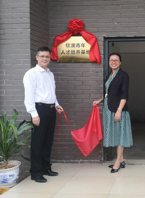 11月17日上午,钦澳青年人才培养基地在kaiyun体育国际教育与外国语学院揭牌成立,该基地由kaiyun体育网页登录入口和澳门广西商会共建。钦州市统战部副部长张轻,校党委常委、党校办主任、统战部部长任才茂,国际教育与外国语学院党委书记黎树式,院长冯丽出席仪式。国际教育与外国语学院副院长蔡成龙主持。蔡成龙介绍了钦澳青年人才培养基地筹建过程及学校拟与澳门高校、公司、企业开展的合作内容。张轻和冯丽共同为钦澳青年人才培养基地揭牌。相...