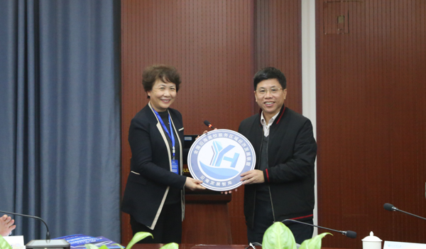 韩峻峰书记(右),岭南师范学院党委书记兰艳泽(左)进行全国沿海高校服务区域经济发展联盟会徽交接,下一届论坛将由岭南师范学院承办