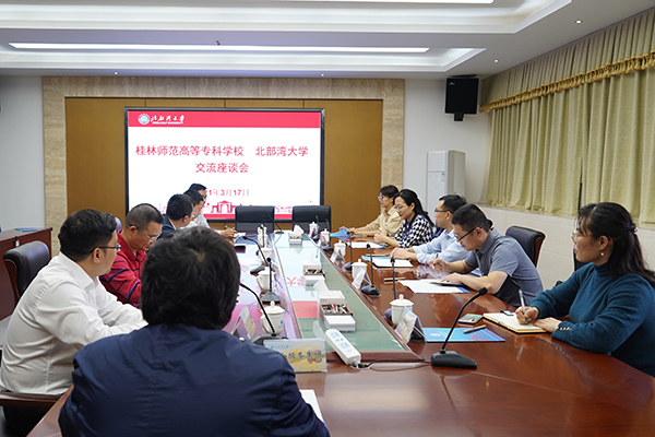 3月17日下午,桂林师范高等专科学校副校长李新华一行来校访问交流。学校党委常委、副校长陈磊出席交流座谈会。