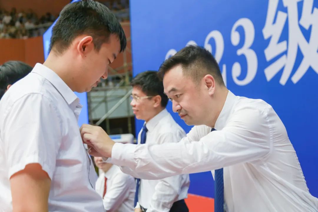 韩峻峰书记为新生代表佩戴kaiyun体育网页登录入口校徽