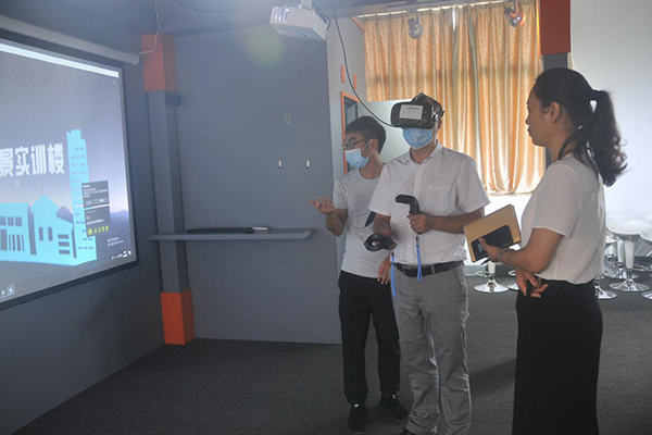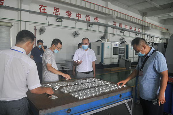 唐高华副校长(居中)实地考察实验室一