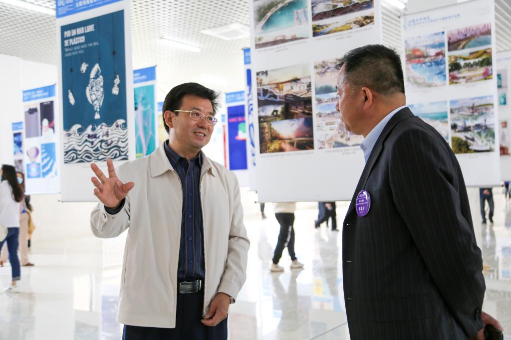 颁奖典礼后,学校党委书记赵君宣布全国大中学生第九届海洋文化创意设计大赛获奖作品及资源海洋主题海报展览开幕。全体与会领导、嘉宾和师生代表一同参观了展览。本次展览共展出了300多件获奖和邀请作品。