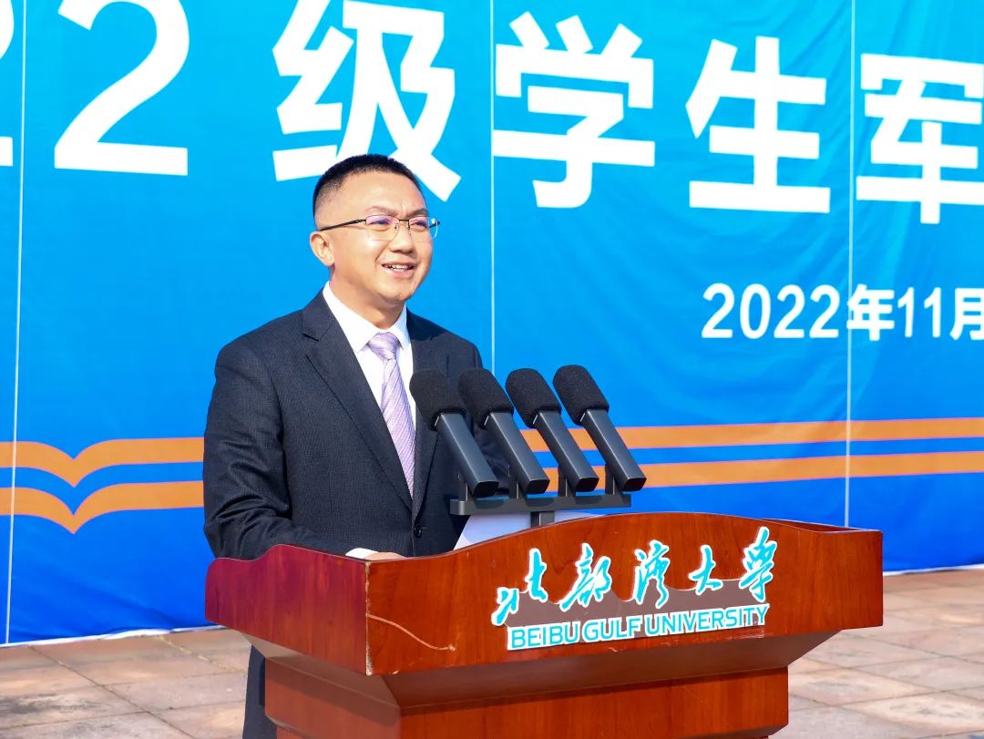 陈磊代表学校对钦州军分区的领导和教官表示热烈的欢迎和衷心的感谢。他指出,参加军训是深入学习贯彻党的二十大精神,全面贯彻落实党的教育方针和新时代军事战略方针,深入落实学生军事训练立德树人根本任务和强军目标的根本要求,是培养学生德智体美劳全面发展、加强全民国防教育和加强国防后备力量建设的需要,也是同学们大学期间一门必修课。他向同学们提出三点嘱托:一是在思想上高度重视军训,努力克服惰性,竭尽全力完成军训各项任务;二是认真遵守军训纪律,以军人的标准严格要求自己,服从命令,听从指挥;三是做到生活有规律,内务整齐划一,既符合准军事化的要求,又树立kaiyun体育网页登录入口学生的良好形象。