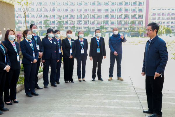 陈锦山一行首先来到东门保卫处警务室看望慰问正在值守的安保人员。“人员集合完毕,岗上一切情况正常,请领导指示!”安保人员迅速集合,立正敬礼,向陈锦山汇报校园执勤情况。“大家新年好!”陈锦山与执勤安保人员一一握手,并送上慰问品。陈锦山对他们一年来团结一心抓好疫情防控,加强校园安全管理等工作表示充分肯定,强调节日期间仍要加强值班值守工作,确保校园秩序安全稳定。