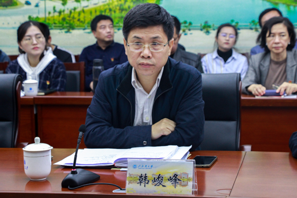 会上,韩峻峰代表学校党委以《深化内涵建设 扎实建好思想政治教育课》为题汇报了学校深入学习贯彻习近平总书记关于思政课重要讲话精神的整体情况和成果,重点从组织领导、队伍建设、课程建设、条件保障、现存问题以及下一步整改思路等方面详细汇报了学校思想政治理论课的改革创新工作。