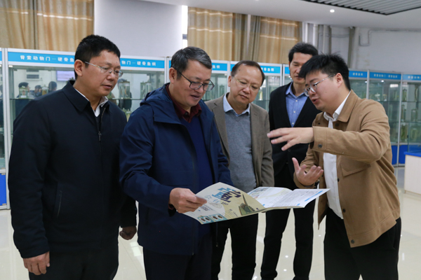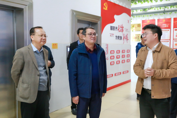 学校党校办、科技处、档案馆等部门负责人陪同调研。(廖泽湖摄)