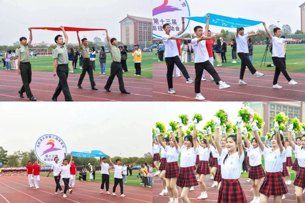 伴随着激昂的乐声,26支方队气宇轩昂地经过主席台,国旗方队英姿飒爽,4名护旗手高擎五星红旗,正步铿锵有力;鲜花方队激情四射,高举花束,摆出五环造型和“二十大”字样,展现拼搏精神;羽毛球方队热情洋溢,矫健的身姿灵动挥舞球拍,充满青春朝气;机船与船舶海洋工程学院由赛车引路,别出新意;海运学院身着海军制服,神采飞扬……队员们以整齐划一、掷地有声的步伐,高亢嘹亮的口号向观众展示他们饱满的热情和昂扬的斗志,让湾大精神在体育赛场上熠熠发光。