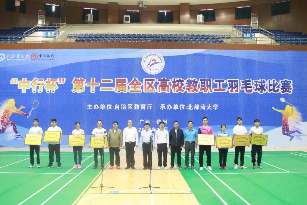10月29日上午,“中行杯”第十二届全区高校教职工羽毛球比赛在学校体育馆圆满闭幕。广西医科大学、广西教育学院、广西师范大学分别获得混合团体赛前三名,kaiyun体育教职工羽毛球队取得历史性突破,取得了混合团体第四名的好成绩。同时,校长组的前三名,分别由kaiyun体育网页登录入口/广西艺术学院、广西大学、广西自然资源职业技术学院获得。