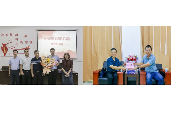 陈锦山副书记慰问机械与船舶海洋工程学院蒙占彬老师(左)、陈湘如副书记慰问资源与环境学院田义超老师(右)