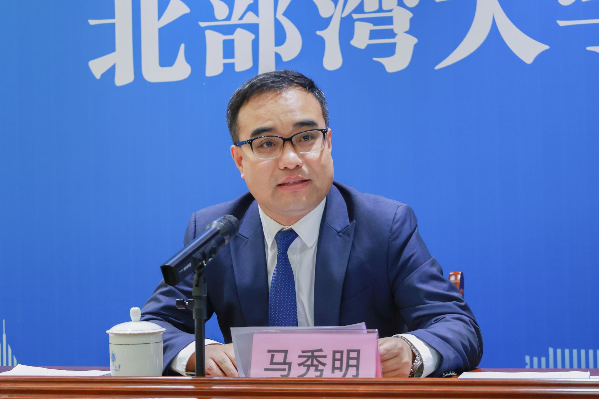 学校党委常委、副校长、宣传部部长马秀明主持新闻发布会