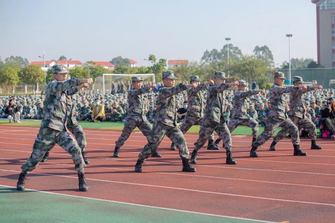 动员大会上,进行了2021年度退役复学学生军事科目表演、教官示范科目表演,展现了经过军营淬炼之后的飒爽英姿。活动最后,韩峻峰为军事训练团授军旗。