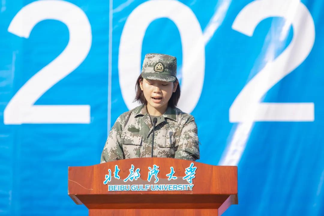 经济管理学院2019级国际经济与贸易专业退役复学学生陆振娟代表全体教官承诺,将坚持以人为本,科学组训、文明组训,按照部队和学校的要求,以良好军人形象高标准,高质量完成军事训练任务。