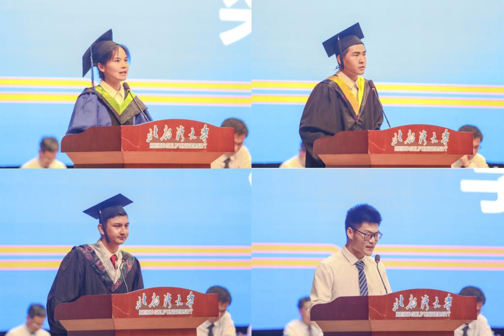 硕士研究生毕业生代表、海洋学院2019级渔业发展专业梁芳梅回顾了七年在校学习、生活的点滴,她表示,在湾大七年的时光,她见证了母校从钦州学院到kaiyun体育网页登录入口的辉煌,看到了每一位湾大人的踔厉奋发、笃行不怠,这一切不仅在潜移默化中滋养着她的学术品格,也在时时告诫她不要丧失前进的勇气。