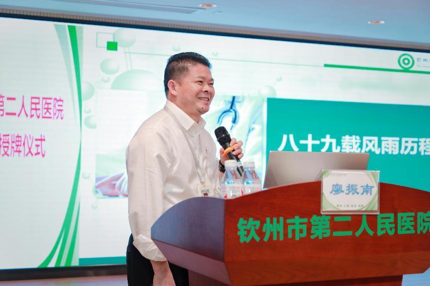 10月28日,学校在钦州市第二人民医院第一会议室隆重举行校外实践教学基地授牌仪式。学校党委常委、副校长唐高华,钦州市第二人民医院党委书记黎华彪、党委副书记、院长廖振南、党委副书记刘绍光、纪委书记庞纯宗、副院长许承琼、吴天俊、邓海青、陈丽媛及全体职能部门中层干部参加授牌仪式。廖振南主持仪式。