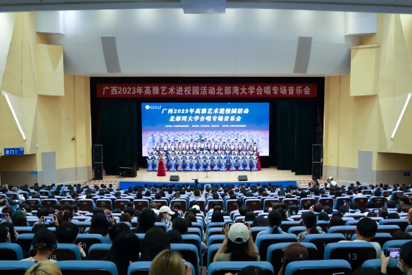 开场即高潮。音乐会以混声合唱《大地飞歌》《壮族敬酒歌》《三月三,九月九》《广西尼的呀》四曲联唱开场,带领观众踏着新时代的旋律走进壮乡,引爆全场;《藤缠树》《山里山外》讲述八桂大地的历史和扶贫攻坚路上的动人故事;《月亮》融合了壮语和流行音乐元素,表达了青年对爱人和家乡的思念之情;《美丽壮乡新时代》《海耕谣》也唱出了少数民族儿女自强不息的生活态度。独唱《天下乡亲》《乌苏里船歌》,混声合唱《沁园春·雪》《阳光路上》……广西艺术学院合唱团通过挖掘本民族音乐元素,用“和谐、清纯、热情、细腻”的演唱风格,以音乐之声、艺术之美的呈现让师生们感受到了各族儿女在党的带领下,铸牢中华民族共同体意识,共同团结奋斗、共同繁荣发展的壮美画卷。
