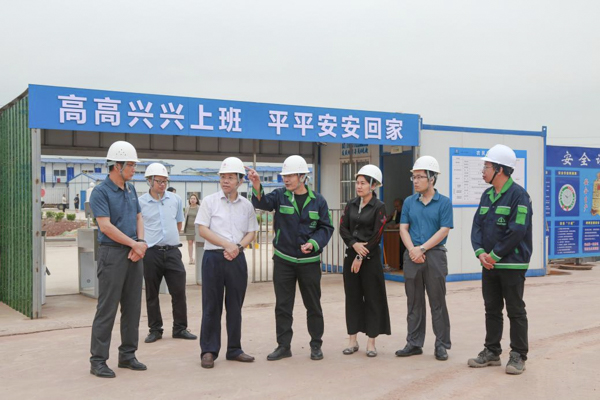 韩峻峰书记(左三)一行参观广西格派电池新材料有限公司生产基地