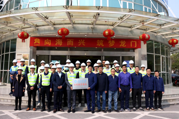 3月2日下午,建筑工程学院党委书记史忠丰、副院长杨海巍带领学院全体教师赴广西路桥工程集团有限公司龙门大桥项目部参观调研项目施工进展,并开展实践教学基地授牌仪式及主题党日活动。