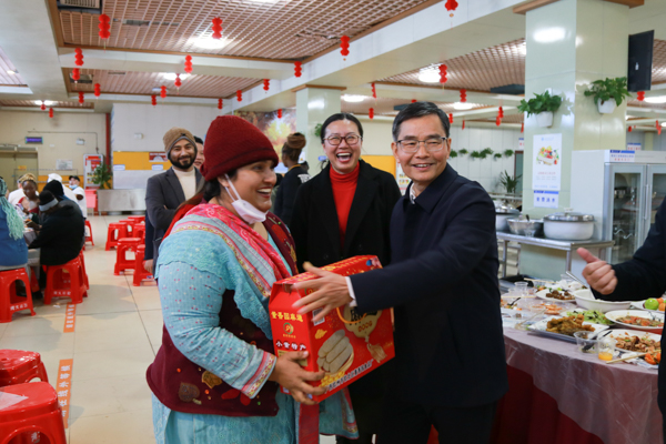 陈锦山副书记为外籍教师派发礼包