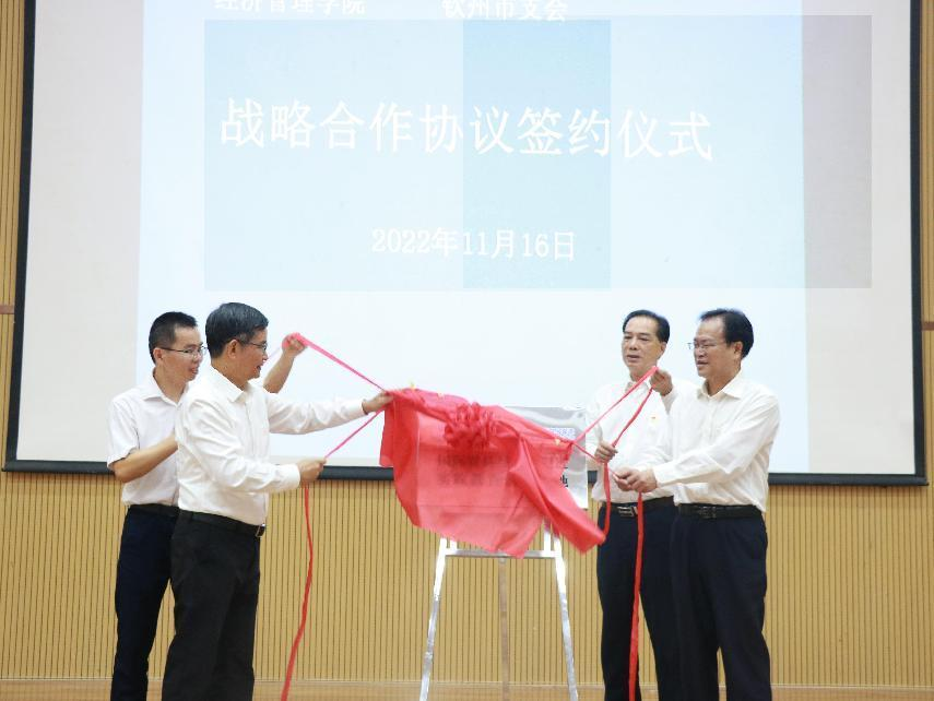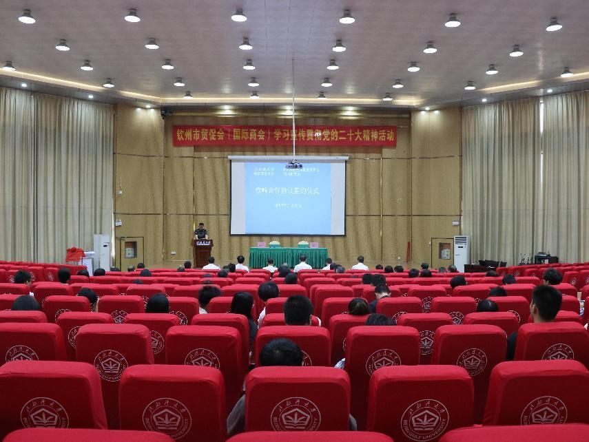 学校经管学院领导班子、钦州市贸促会代表、经管学院部分教师代表、研究生代表参加仪式。