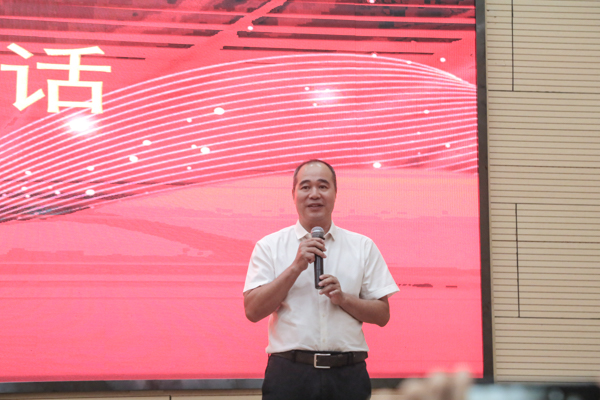 唐高华在展演后的讲话中意犹未尽称赞“这场展演可以用‘震撼’二字来形容。师生们声情并茂、激情澎湃的朗诵,展现了湾大师生对中华语言文字的自信和热爱。”他强调,普通话推广在人才培育,文化传承和创新等方面具有重大作用,希望广大师生自觉在言行中担当起讲普通话和文化传播的时代责任,为语言文字工作献出更多的湾大力量。(梁爽 陆冬梅 摄)