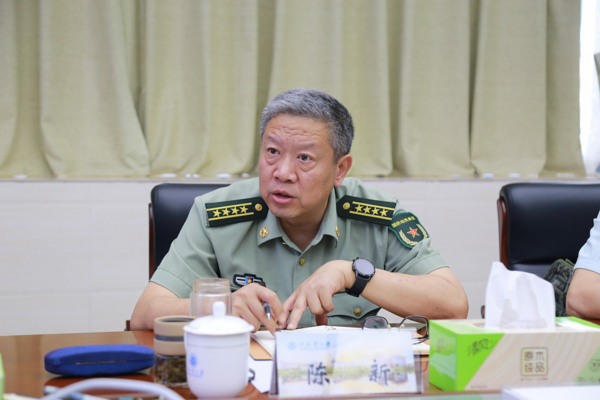 7月12日下午,钦州军分区大校政委陈新、动员处参谋刁留华、保障处中校参谋王立武一行到校调研大学生服役和国防教育工作。校党委副书记陈湘如会见陈新一行进行交流座谈。