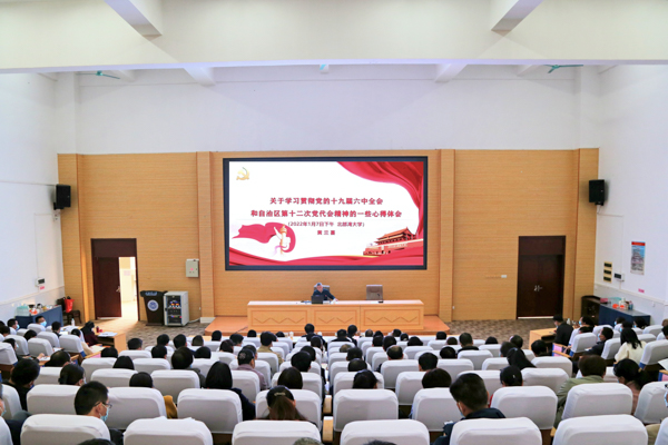 与会人员纷纷表示,报告内容丰富、案例鲜活,听后深受鼓舞、倍感振奋。日后,将十九届六中全会精神和自治区第十二次党代会精神用心学进去、用情讲出来、用力做起来,扎实落到实际工作当中,坚持初心使命,坚定理想信念,为建设海洋性特色鲜明的高水平应用型大学贡献智慧和力量。