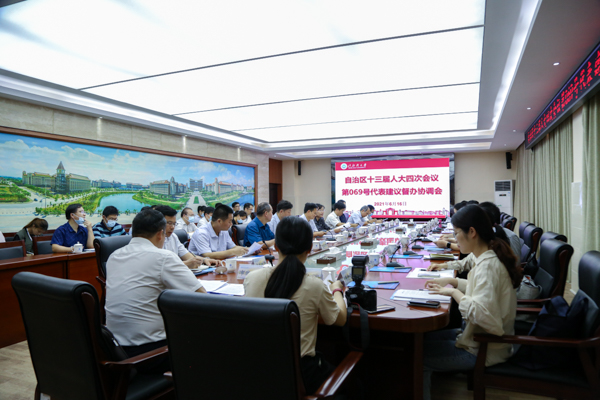 6月16日上午,自治区人大常委会在学校办公楼523会议室召开自治区十三届人大四次会议第069号代表建议督办协调会,听取代表建议办理工作的情况汇报以及提出建议的代表对办理工作实效的意见,并就协调解决建议涉及的问题进行了座谈交流。