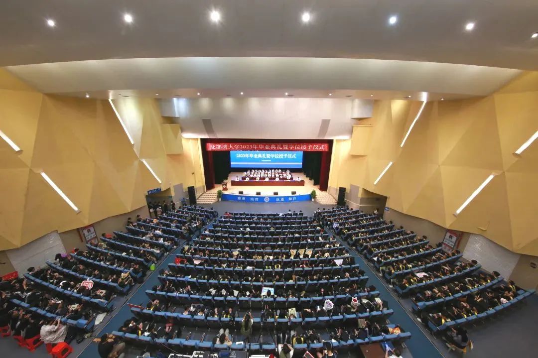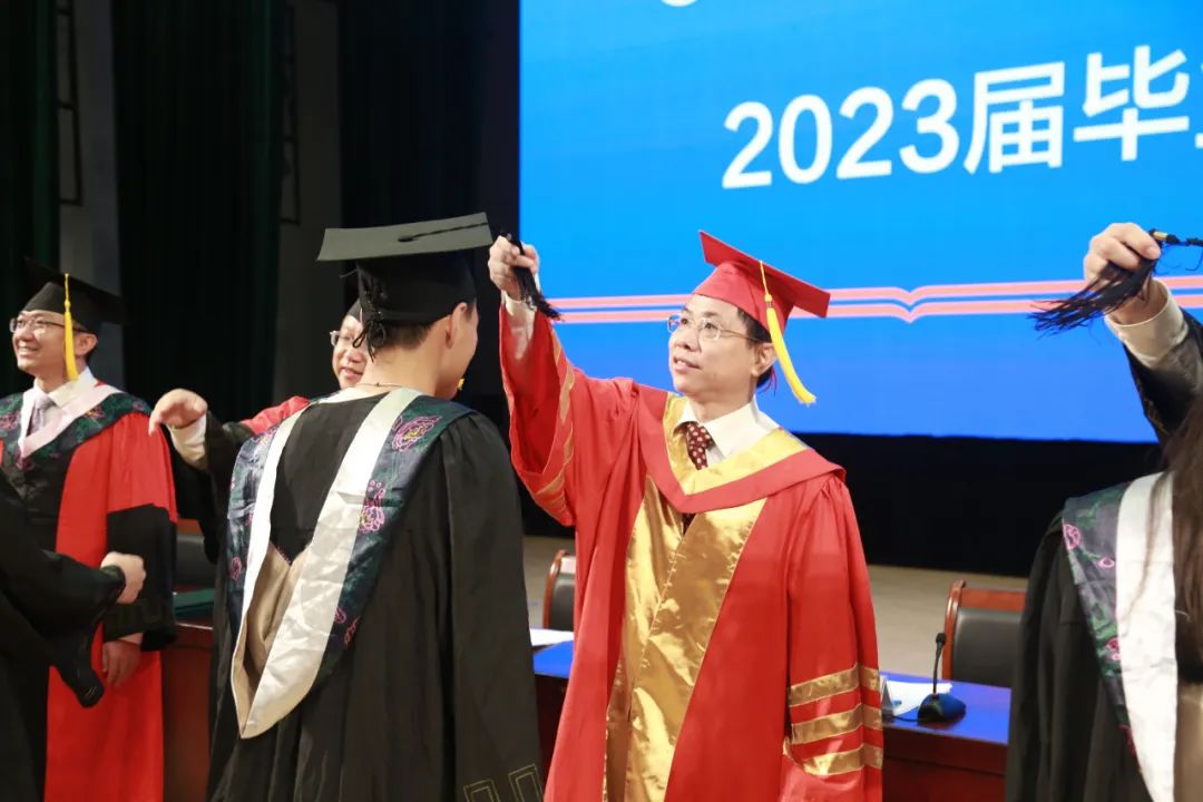 典礼上,学校领导为2023届毕业生代表拨穗并颁发毕业证书、学位证书;对自治区优秀毕业生和学校优秀毕业生代表及获得国家奖学金、学校奖学金的毕业生代表进行表彰;为成功入选2023年西部计划志愿者的毕业生授予绶带。