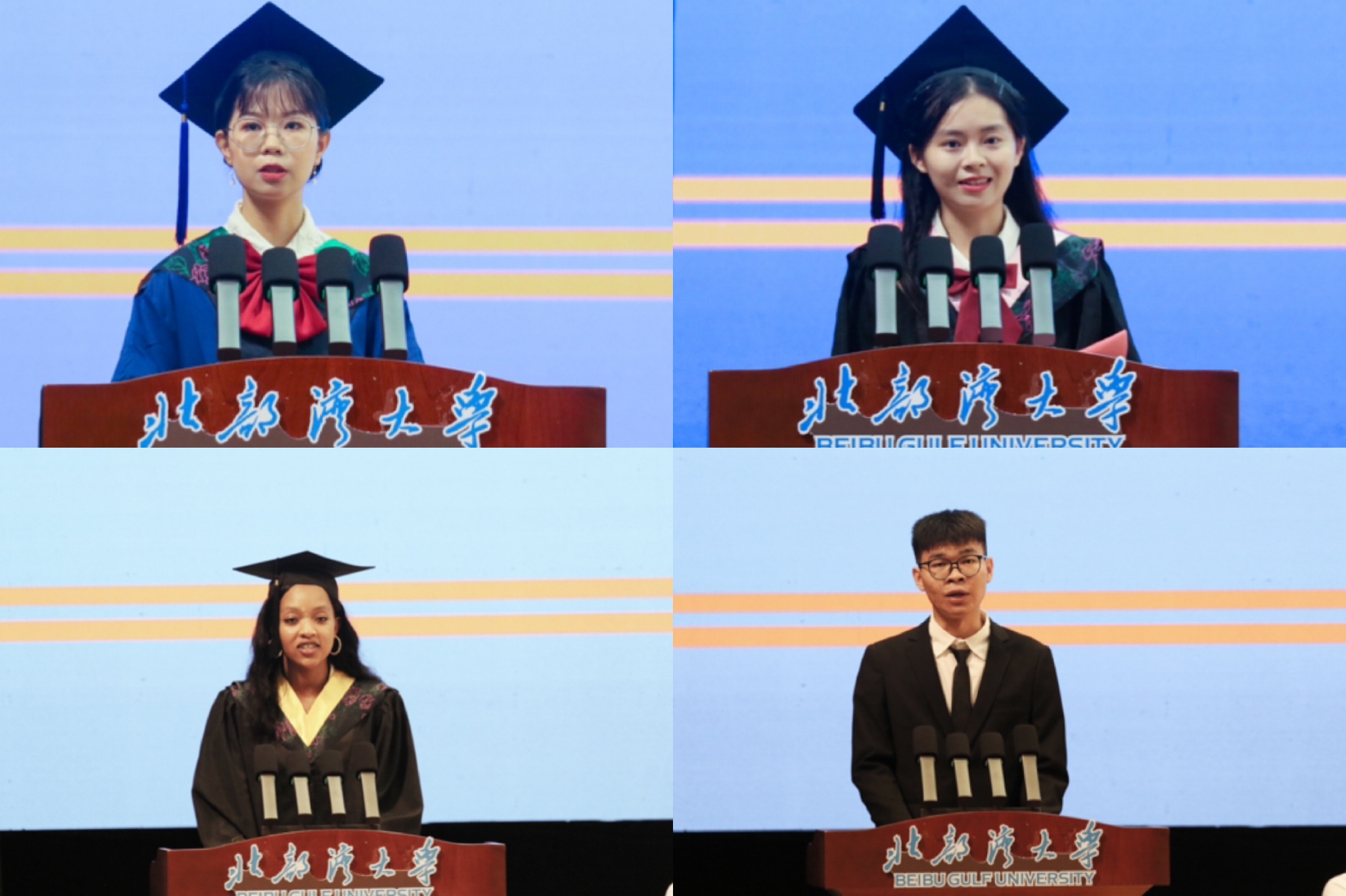 毕业生本科生代表陆梦影回忆了初到湾大的年少无惧和懵懂期待,她说,湾大承载了他们一路的成长与收获,给她乘风破浪的志气、骨气和底气。