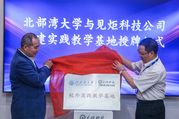 会后,唐高华副校长、见炬科技有限公司党支部书记肖孝志共同为实践教学基地揭牌。